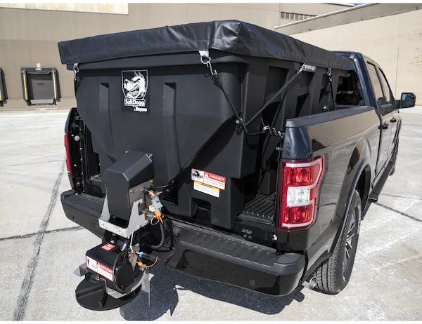 - Buyers Products SaltDogg SHPE1500 Electric Poly Hopper Spreader gives contractors and facility managers a low-volume hopper spreader ready for residential or commercial use. Electric power means quieter operation with no need for refueling or engine servicing. The durable 1.5 cubic yard poly hopper features a patented double-wall construction. It fits a 3/4 ton or 1 ton pickup truck and uses a bulk salt or a 50/50 salt/sand mix.