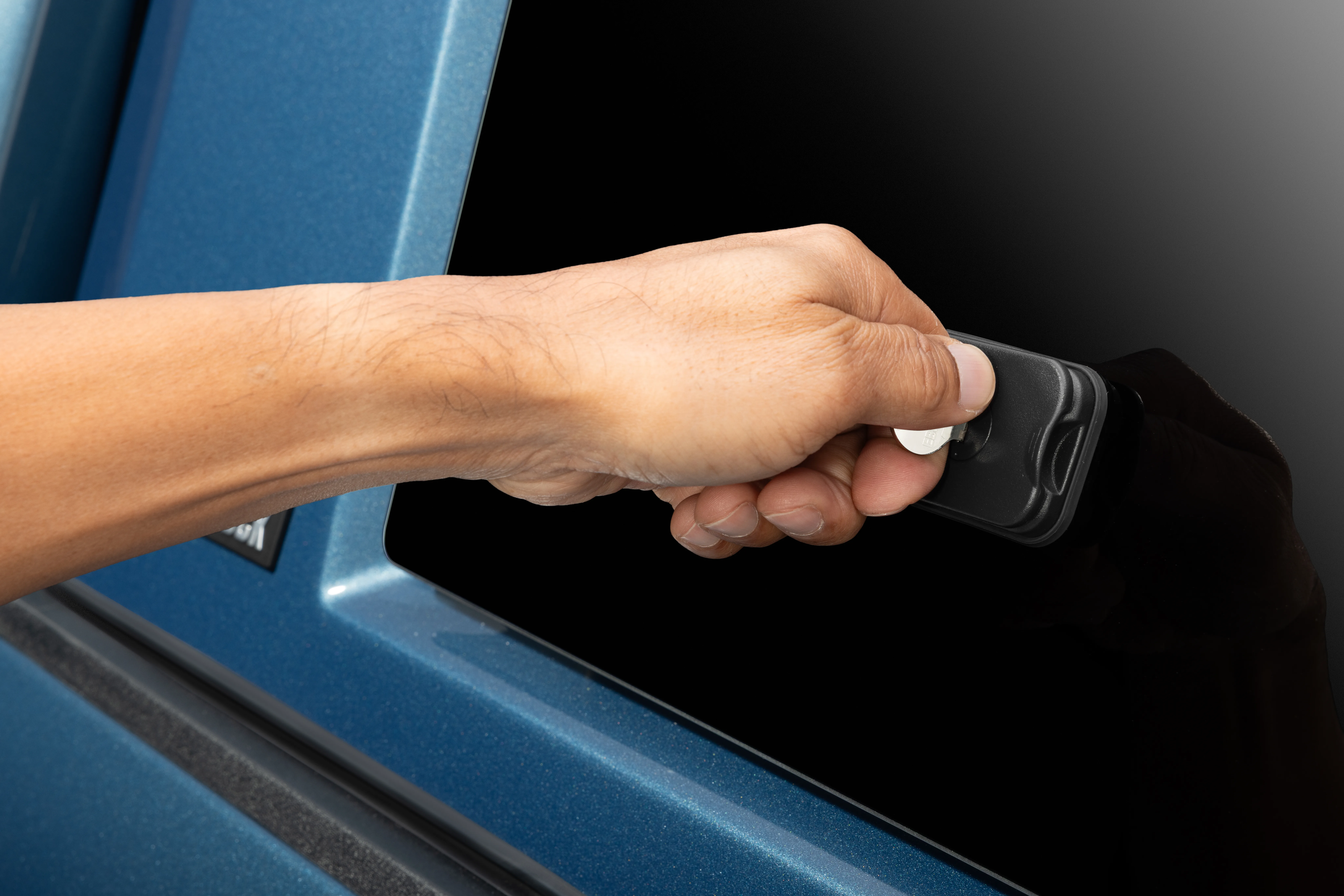 ā Sleek all-glass side access windoors and rear hatch door with single-handle design combine modern aesthetics with full gear access.